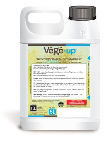 Végé-up® est un adjuvant d’origine bio-sourcée qui améliore l’efficacité de nombreuses bouillies herbicides. Concentré émulsionnable contenant 831 g/l d’esters méthyliques d’acides gras.
